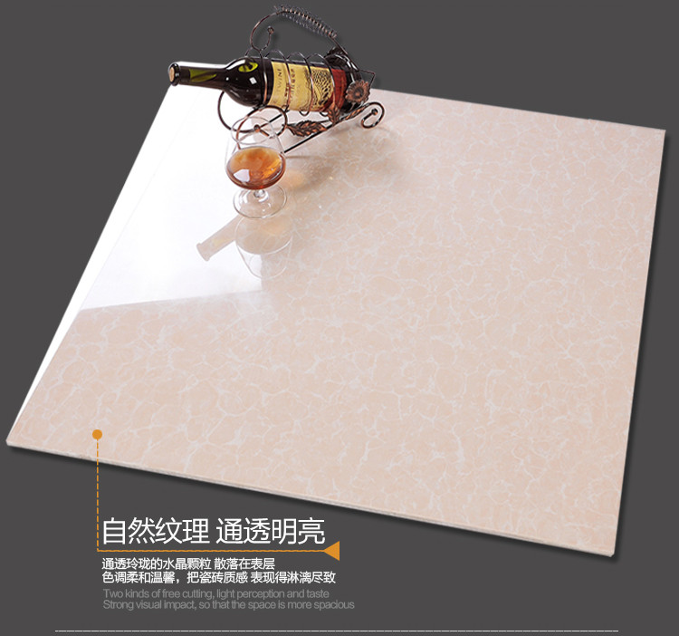 拋光磚屬于“瓷”,沒有釉,煅燒后需經過磨邊、拋光等冷加工處理,規格大,按照國家標準GB/T4100附錄G要求:拋光磚的表面光潔度應在55度以上。常見的600㎜、800㎜、1000㎜、1200㎜等規格產品。市面或曾經流行過的拋光磚有斑點磚、滲花磚、大顆粒磚、夢幻磚、微粉磚等類別。